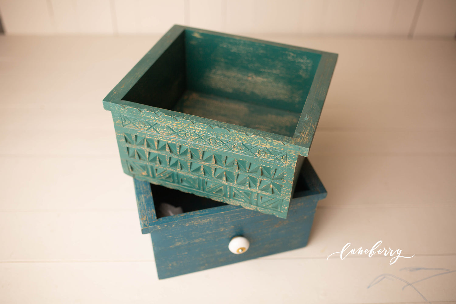 FINAL SALE - Carved Crate BLUE AND GREEN