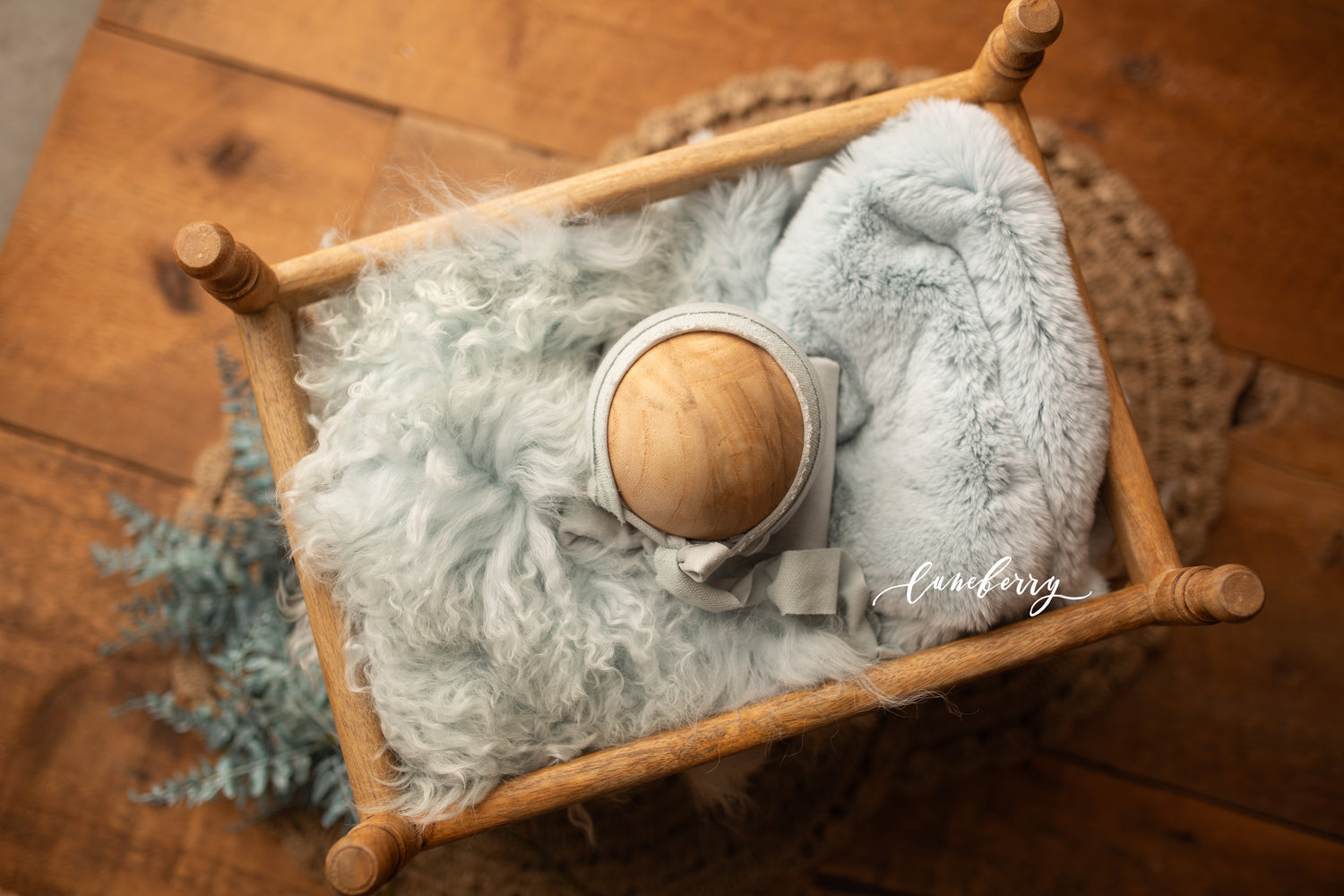 - OPTION 1 - FULL SET Alysse (toddler) crib, Sheepskin and rabbit fur, simple bonnet, wrap