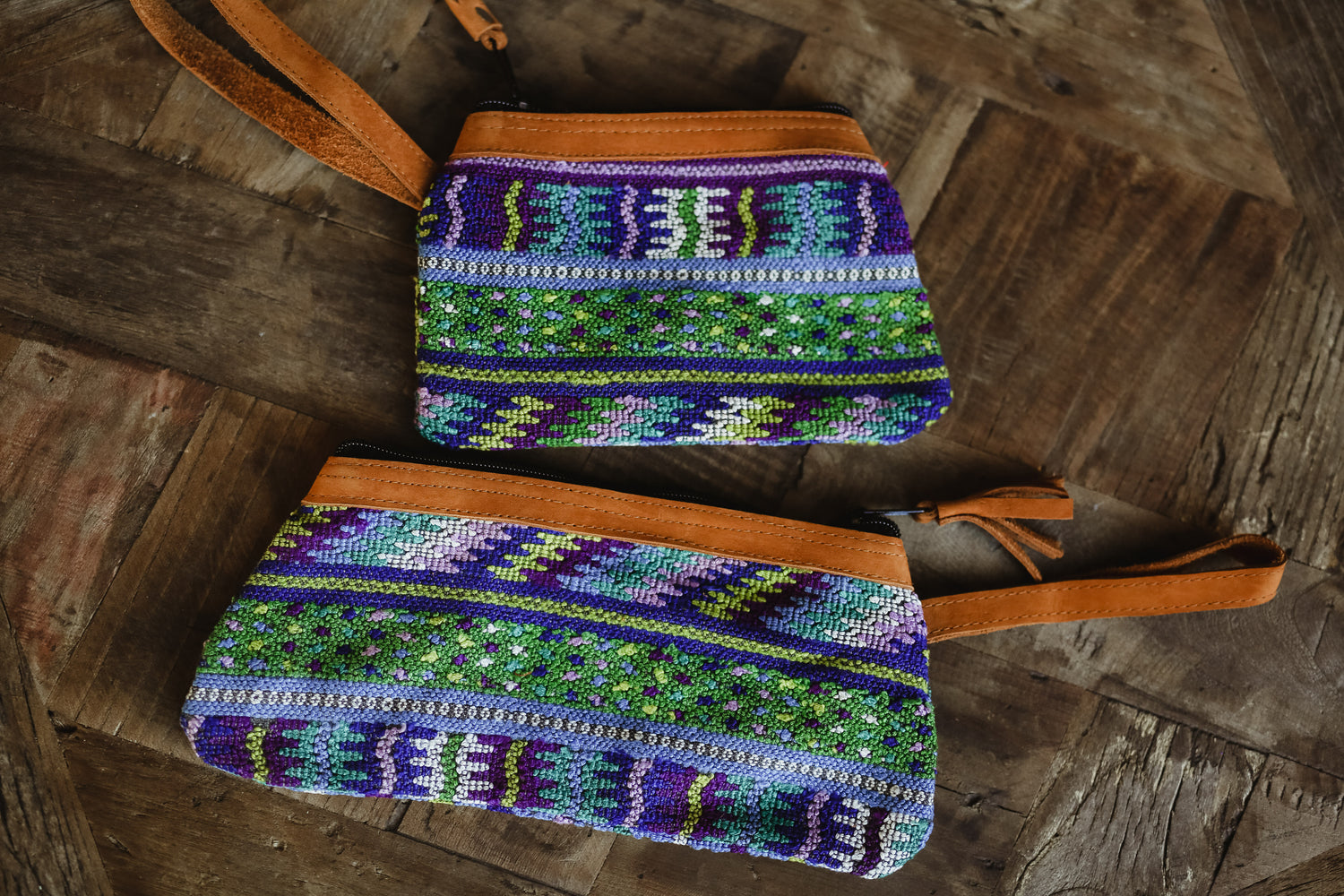 Mayan Huipil wristlet bags -Set 03 Blue Pattern