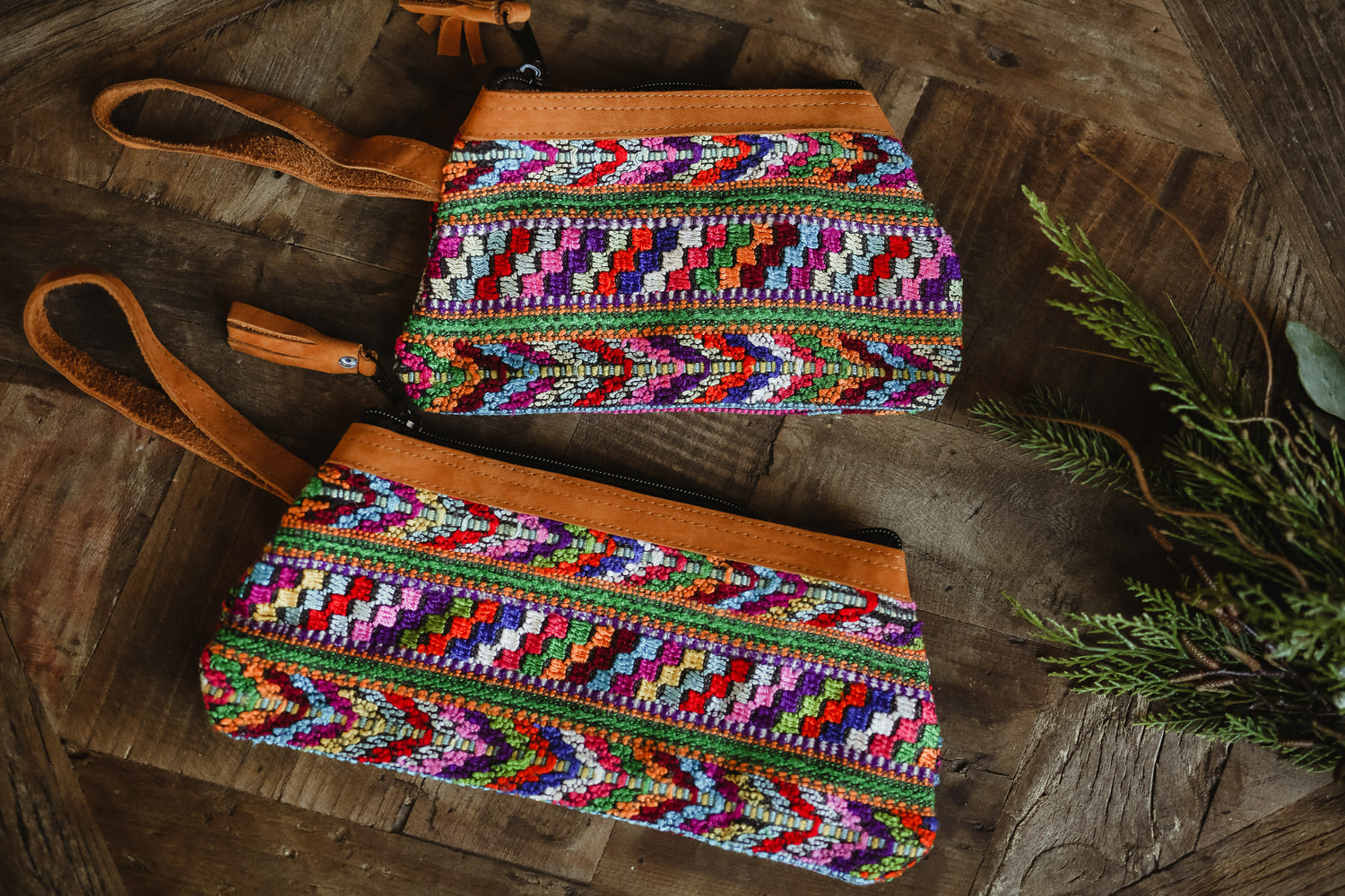 These wristlet bags are made our of Huipils.