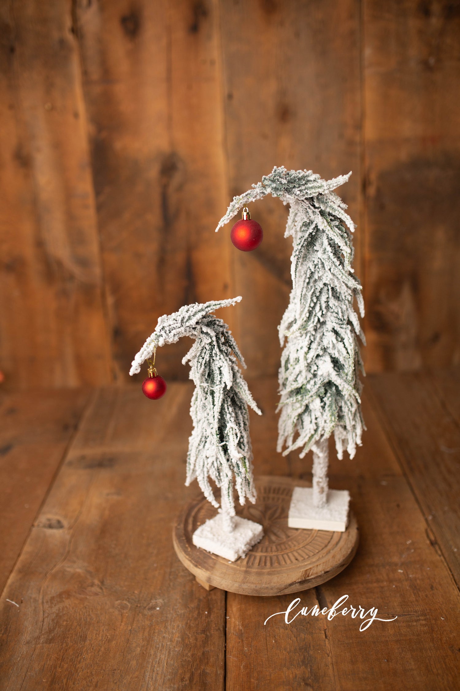 These darling ornament topped snowy christmas trees are just simply amazing!