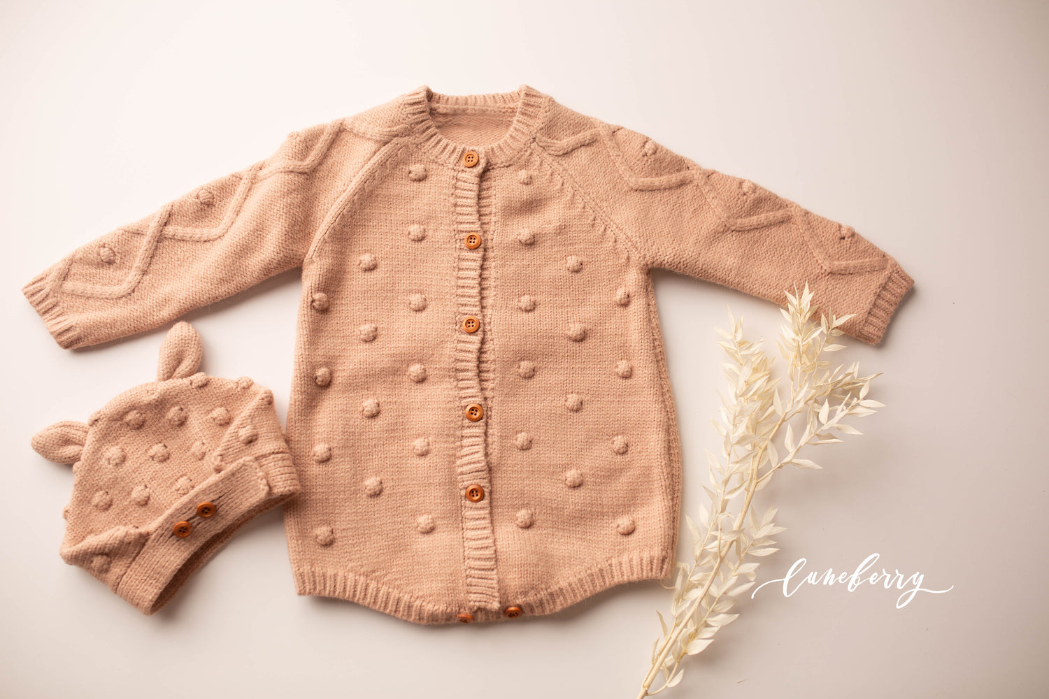Amazing quality knit romper. Long sleeved. Bonnet included.